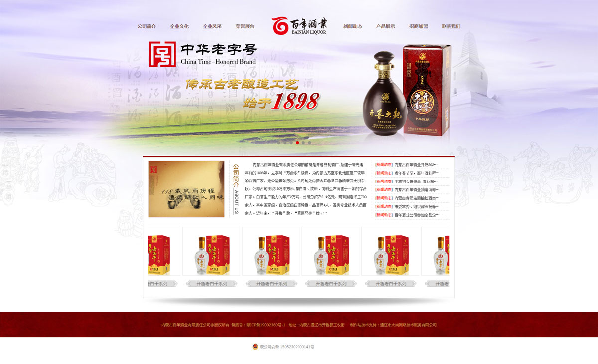 內(nèi)蒙古百年酒業(yè)有限責(zé)任公司的前身是開魯制酒廠,始建于1898年的“萬合永”燒鍋,迄今已有120多年釀酒歷史。企業(yè)歷經(jīng)了個(gè)體、國營(yíng)、轉(zhuǎn)制的變革和發(fā)展,現(xiàn)已成為集白酒、木糖、飼料生產(chǎn)銷售于一體的自治區(qū)農(nóng)牧產(chǎn)業(yè)化重點(diǎn)龍頭企業(yè),是通遼域內(nèi)首家榮獲國家商務(wù)部頒發(fā)的“中華老字號(hào)”企業(yè)。