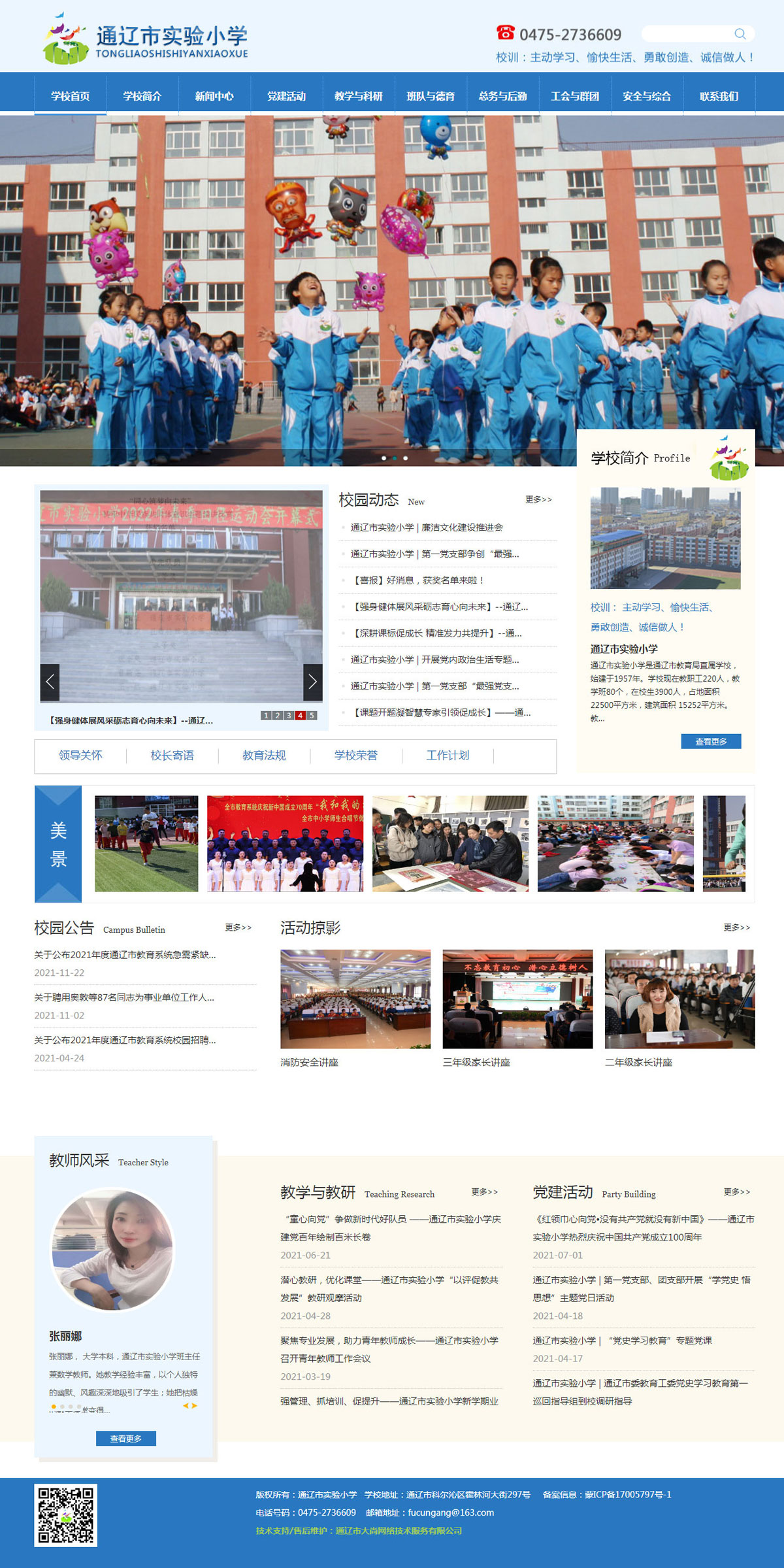通遼市實驗小學(xué)是通遼市教育局直屬學(xué)校,始建于1957年。學(xué)?,F(xiàn)在教職工220人,教學(xué)班80個,在校生3900人,占地面積22500平方米,建筑面積 15252平方米。教師隊伍中具有大專以上學(xué)歷的195人。具有研究生碩士學(xué)位畢業(yè)的9人,小學(xué)特級教師4人,高級教師57人,小學(xué)高級教師70人,小學(xué)一級教師87人。